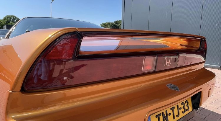 Met veel hulp en gezelligheid van de bruidegom is het exterieur van deze auto weer zo dicht als mogelijk bij nieuwstaat gebracht. Naar verluidt zijn er van deze Honda NSX in deze kleur YR514P Imola Orange maar drie gemaakt.